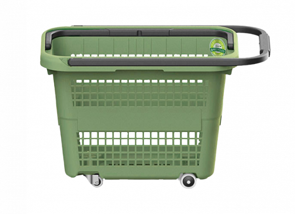 Корзина RB32L располагает двумя ручками: раскладной, за которую покупатель везет корзину, и центральной подъемной ручкой, позволяющей легко вытащить корзину из стопки и нести корзину в руке, пока она не тяжелая. Все корзины снабжены поддерживающим бортиком, который не позволяет ручке подать на пол. Ручка всегда остается на уровне руки покупателя.
